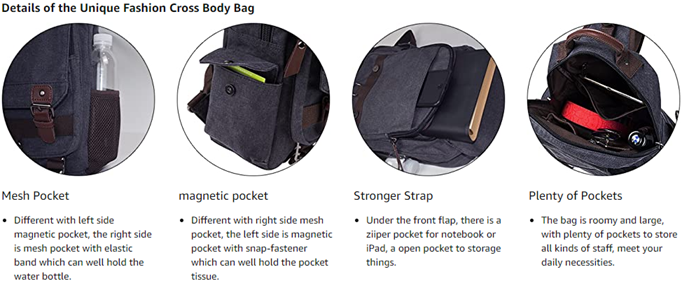 Material: Soft and durable Washed Canvas with Leather Decoration. The messenger sling bag is made of a very durable looking canvas material on the outside ,more luxurious material inside the main compartment.