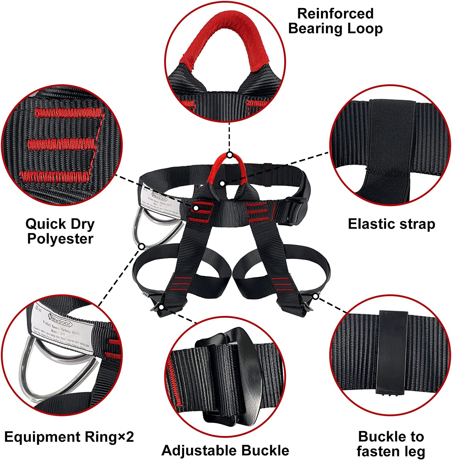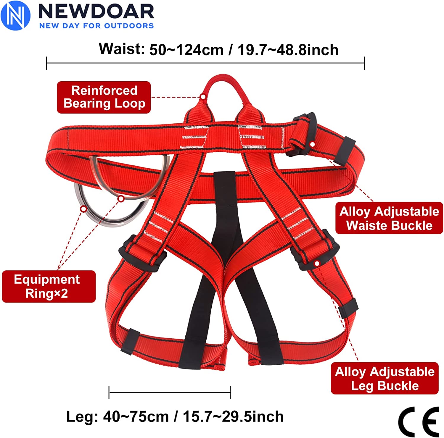 NewDoar Climbing Harness, Mountaineering Rock Climbing Harness, Half Body Harness for Rappelling Fire Rescuing Tree Climbing