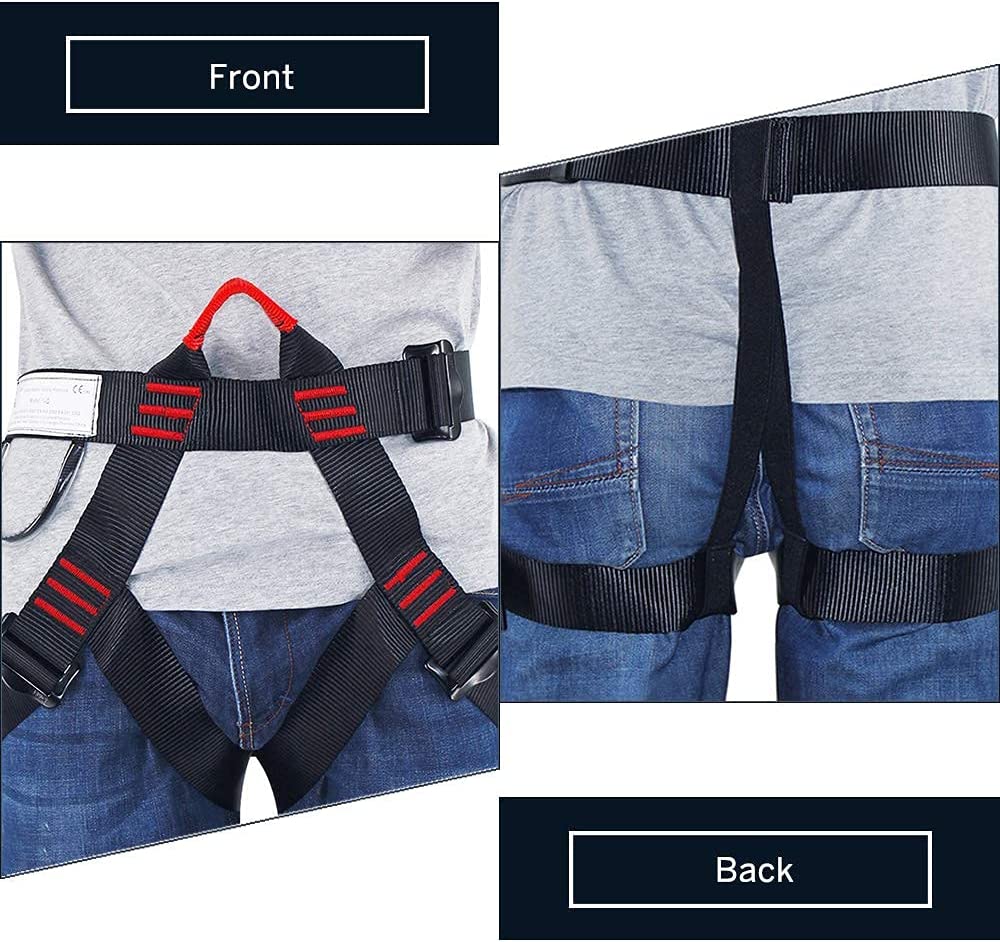 • [FIT]:climbing Belts fits waist 20"to 48"(51cm-122cm);Leg 16" to 31.5"(40cm-80cm). Easy to operate, wear and remove.