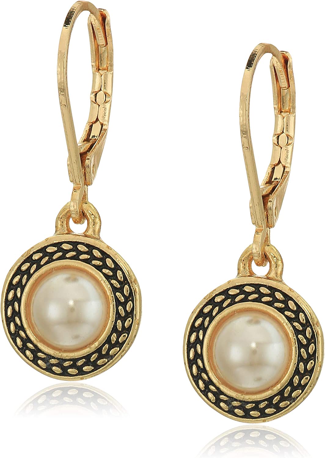 White Crystal Earrings: Add some elegance to your outfit with these beautiful silver tone earrings with faceted cloudy opal white crystal glass center surrounded by engraved trim, with a Leverback closure