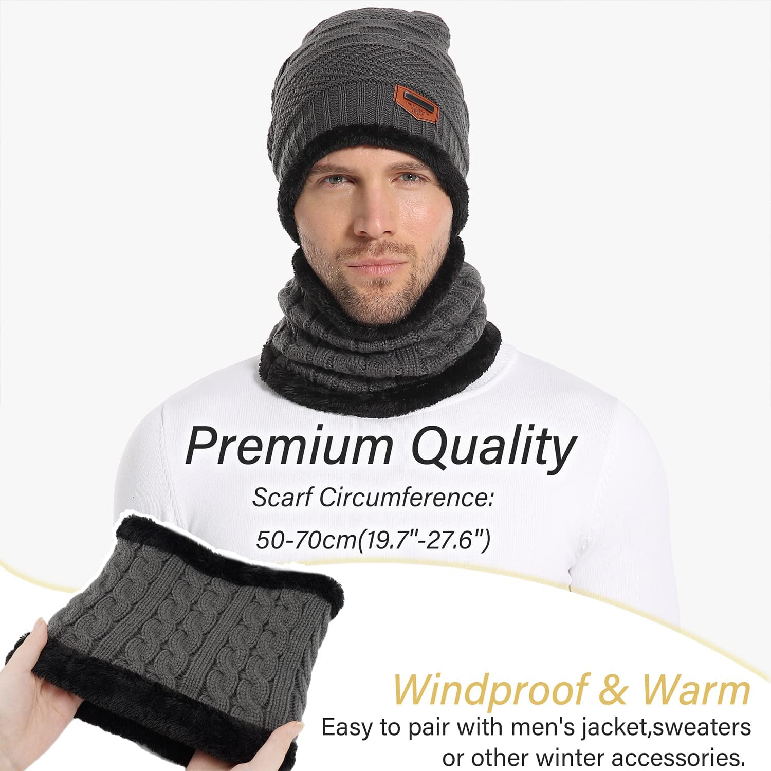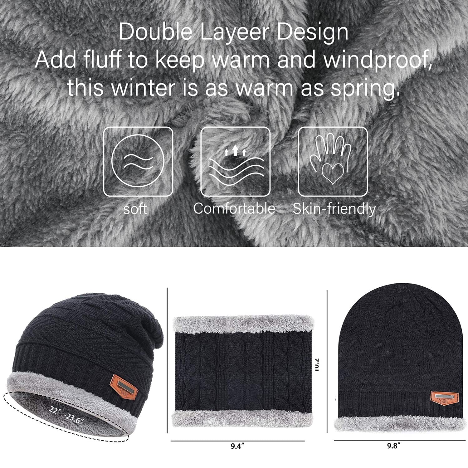 Mens Womens Winter Beanie Hat Scarf Set Warm Knit Hat Thick Fleece Lined Winter Cap Neck Warmer for Men Women