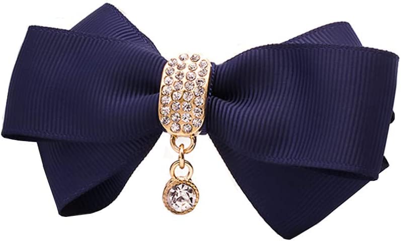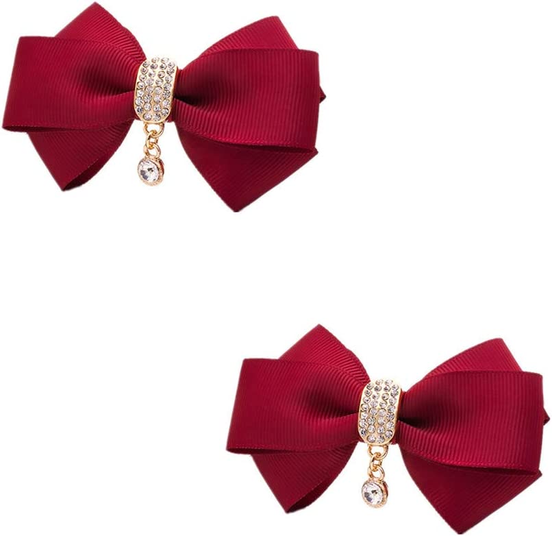 Rhinestone Crystal Dangle Center Ribbon Assorted Color Bow Shoe Clips Pair Removable Shoe Buckle (Black)