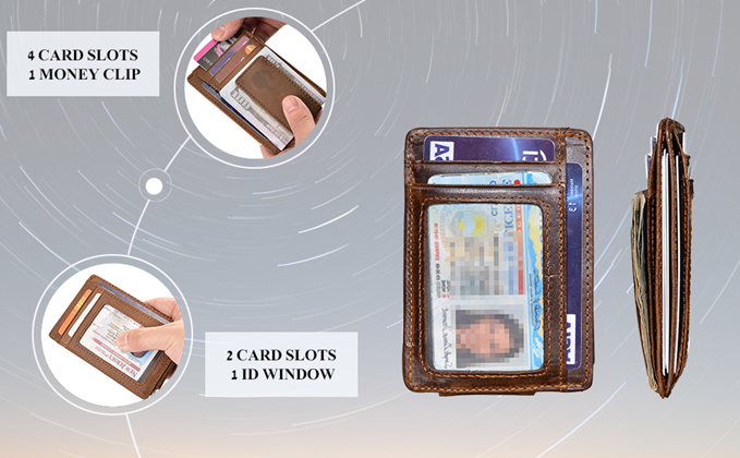 • Construction: 6 Card Slots,1 ID Display Window,1 Big Change Pockets and 1 Strong Magnetic Money Clip.