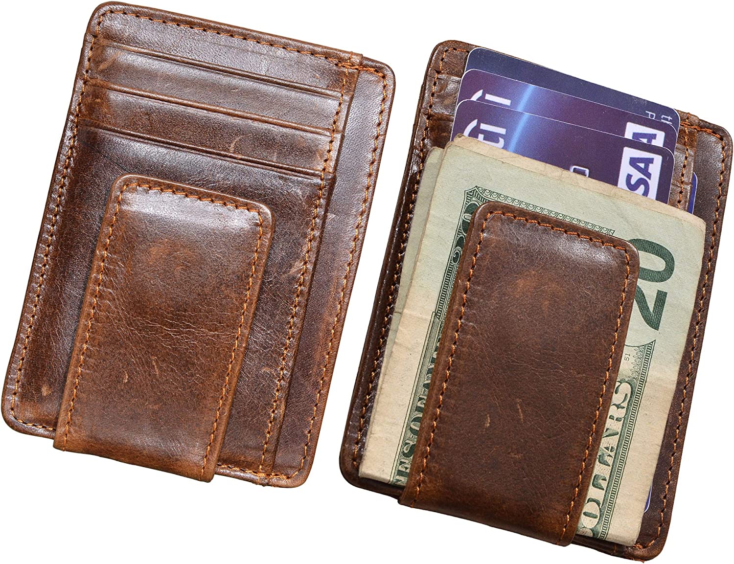 HOPSOOKEN Money Clip RFID Front Pocket Wallet Men Leather Slim Minimalist Wallet