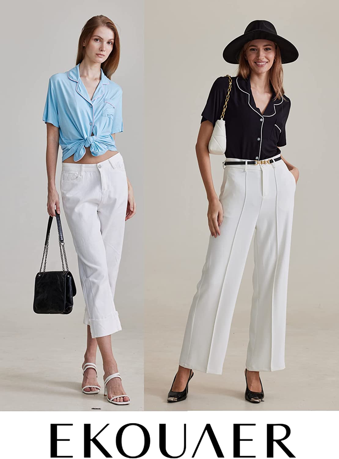 • HIGH QUALITY MATERIAL: Ekouaer pajamas set is made of super soft and cozy fabric-95% Polyester/5% Spandex to keep you easeful while sleeping at night, ultra smooth against the skin so you can enjoy superior comfort.