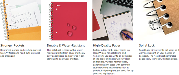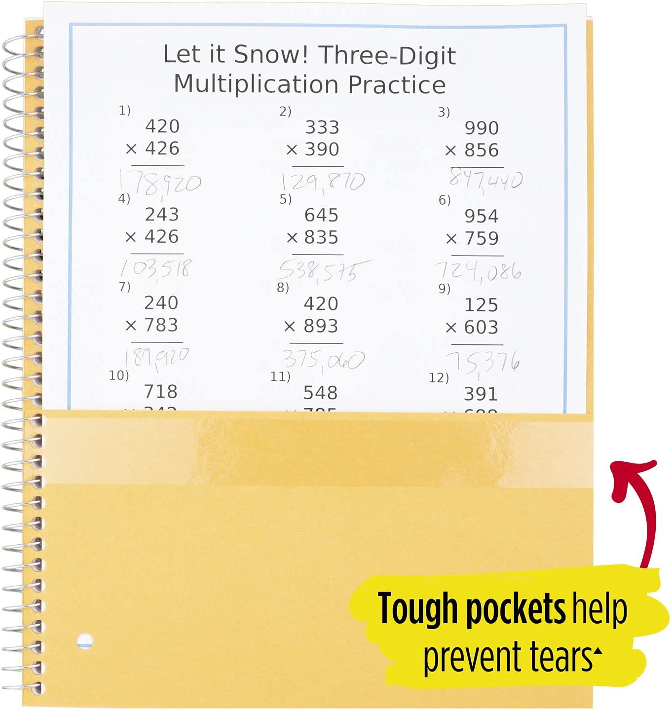 • Tough pockets help prevent tears and hold 8-1/2" x 11" loose sheets and handouts. Four 2-pocket dividers keep subjects organized. Covers are water resistant to protect your notes and our Spiral Lock wire helps prevent snags on clothes and backpacks.