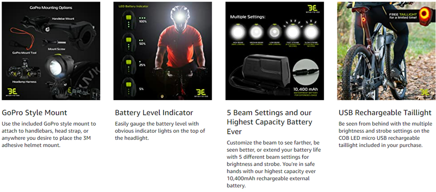 EXTREMELY BRIGHT 1800 Lumen CREE LED Technology - This Bike Light with new 10,400mAh battery gets Approximately 4-5 Hours on High, 7 hours on medium, 12 hours on Low