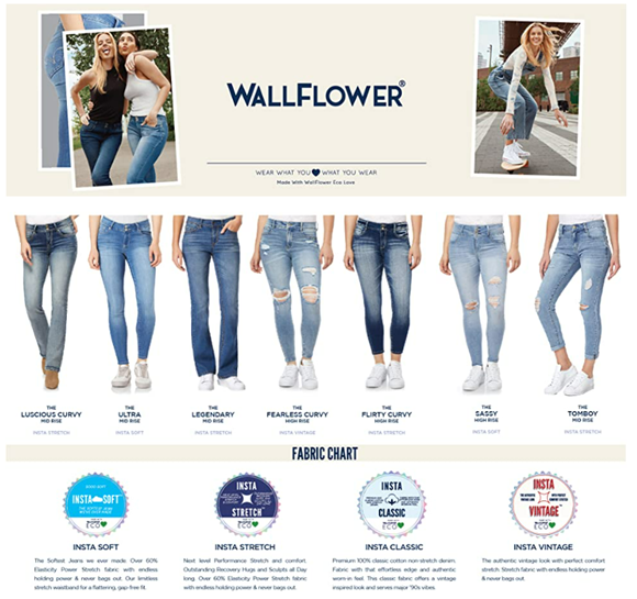 • QUALITY MATTERS: WallFlower's premium feel, Insta Stretch performance denim. Our stretchiest, never-loses-its-shape denim with endless holding power, and outstanding recovery.