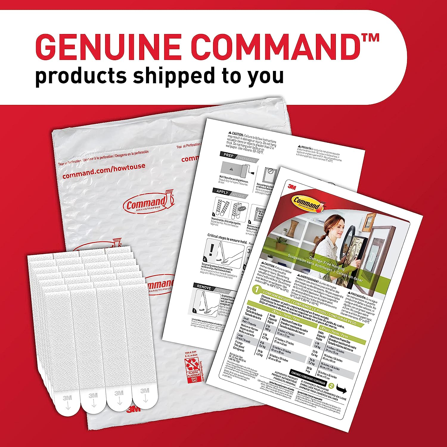Command White Large Picture Hanging Strips let you decorate how you want, when you want, without damaging surfaces. A great home improvement item, these picture hangers stick on a variety of smooth surfaces without leaving holes, marks or sticky residue. Use these wall hanging strips to hang picture frames, college dorm decor, wooden letters, nursery decor, calendars or to create a gallery wall. Simply mount these picture strips on painted walls, finished wood, painted concrete cinder blocks, laminate, glass, metal and tiles and enjoy the damage free hanging of your favorite decorations. Perfect for home renovators and college students, use these Command Picture Hanging Strips in your home, office, apartment or dorm room to elevate the appearance of your living or working space without tools. Directions are included; follow the directions closely to use the 3M Wall Hanging Strips as intended. A clever decorating solution that doesn’t damage surfaces, these wall hanger strips will help you fearlessly change your space. One package contains 14 pairs of large white picture hanging strips. Four adhesive strip pairs hold up to 16 pounds with a maximum frame size of 24 x 36 inches. Decorate, organize and celebrate damage free with Command.