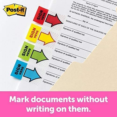 Plan, prioritize and personalize at work with Post-it Flags. These eye-catching, colorful flags can help keep you organized and stay productive. Use them to eliminate confusion when signatures are required or different areas that need to be reviewed. Post-it Flags are great to use for color coding and managing day-to-day tasks.