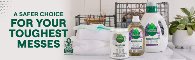 Just because you can’t see household germs, doesn’t mean they aren’t there. Seventh Generation Disinfectant Spray kills 99.99% of household germs, botanically. This includes cold and flu viruses*. The disinfecting spray formula does not require a rinse, even on food contact surfaces, and contains no synthetic fragrances or chlorine. Our Eucalyptus, Spearmint & Thyme Scent Disinfectant Spray is scented with essential oils and botanical extracts and leaves a spearmint and herbal scent. EPA registered disinfectant and deodorizer can be used around kids and pets and is suitable for use on all hard non-porous surfaces including children’s toys, pacifiers, gym equipment, food contact surfaces, and more. Try all the Seventh Generation Household Products; All Purpose Cleaner, Stone Cleaner, Wood Cleaner, Glass Cleaner, Granite Cleaner, toilet bowl cleaner, and disinfectant cleaner products. At Seventh Generation, we do business differently. We believe our products are healthy solutions for use within your home–and for the community and environment outside it. Not only that, but we believe it is our responsibility to set a course for a more mindful way of doing business, where companies act as partners with other stakeholders to create a brighter future for the whole planet. Seventh Generation is proud to be a Certified B Corporation. B Corps are certified to be better for workers, better for communities, and better for the environment. By choosing Seventh Generation products, you’re joining us in nurturing the health of the next seven generations. A partnership with the CleanWell Company, makers of the patented thyme-based disinfecting technology, brings you a line of Seventh Generation Disinfecting Sprays with CleanWell Inside. *Kills over 99.99% of household germs, specifically: Influenza A virus, H1N1, Rhinovirus type 37, Staphylococcus aureus, Salmonella enterica, Pseudomonas aeruginosa and Escherichia coli.