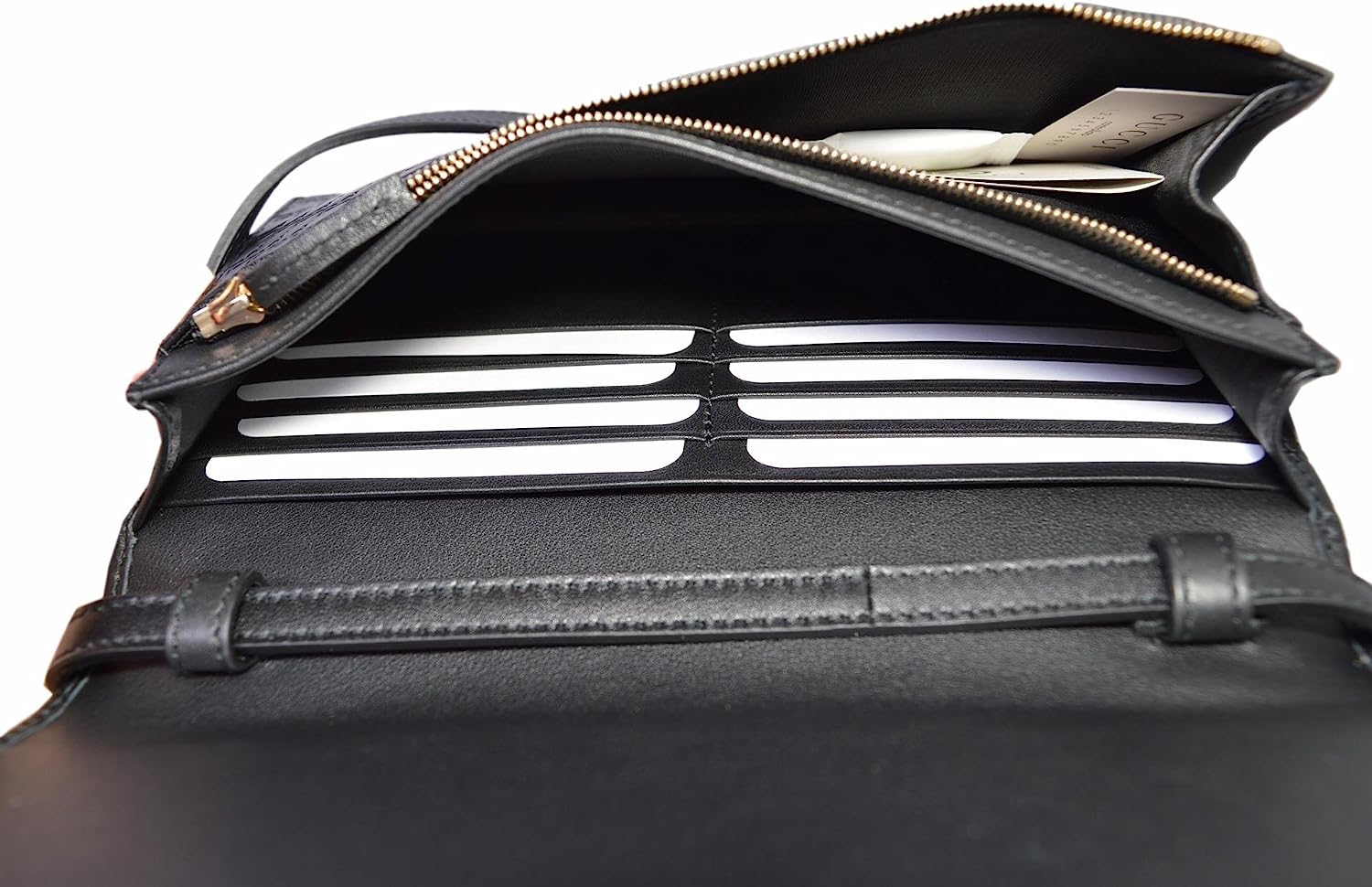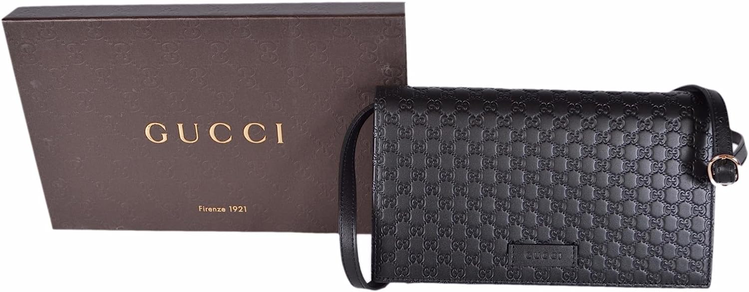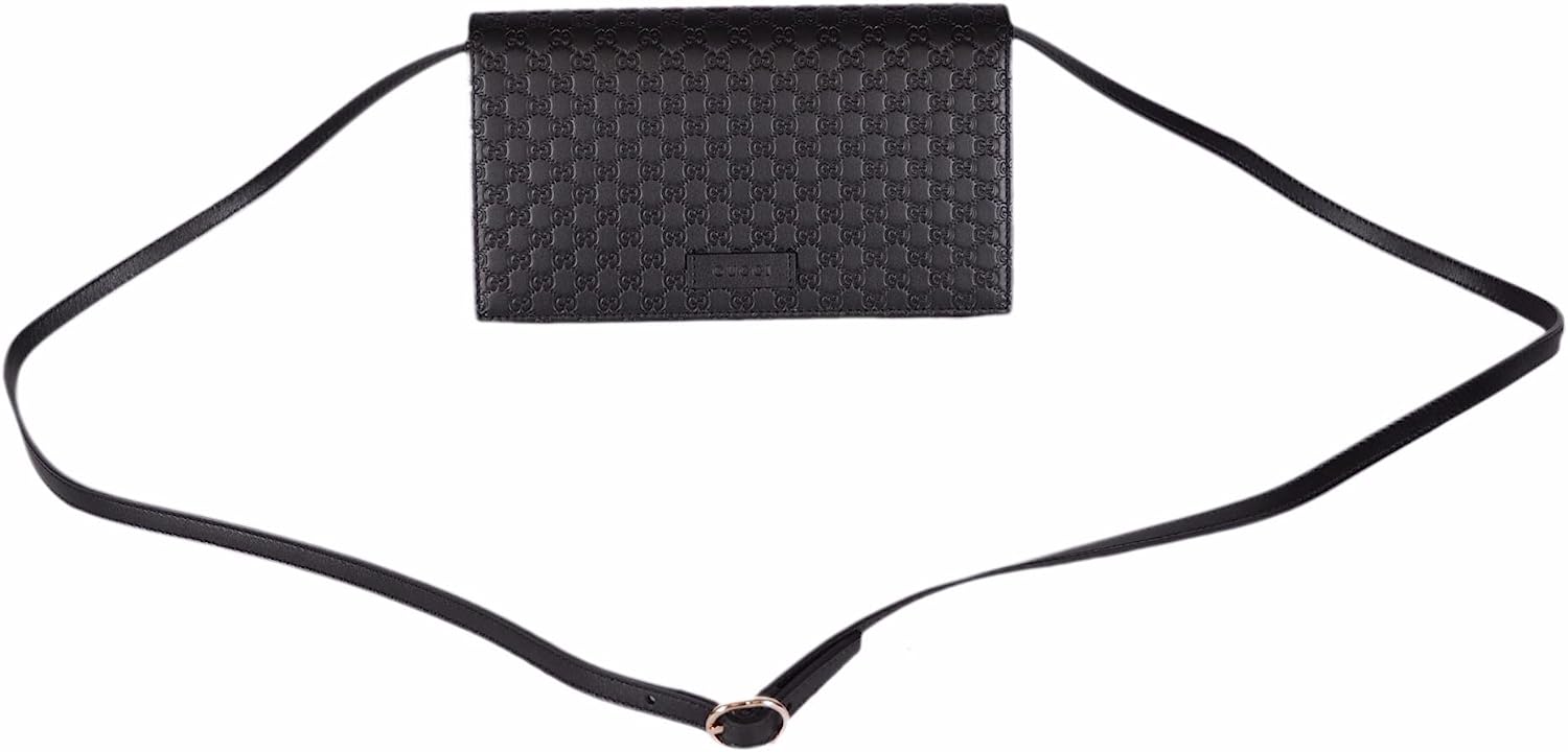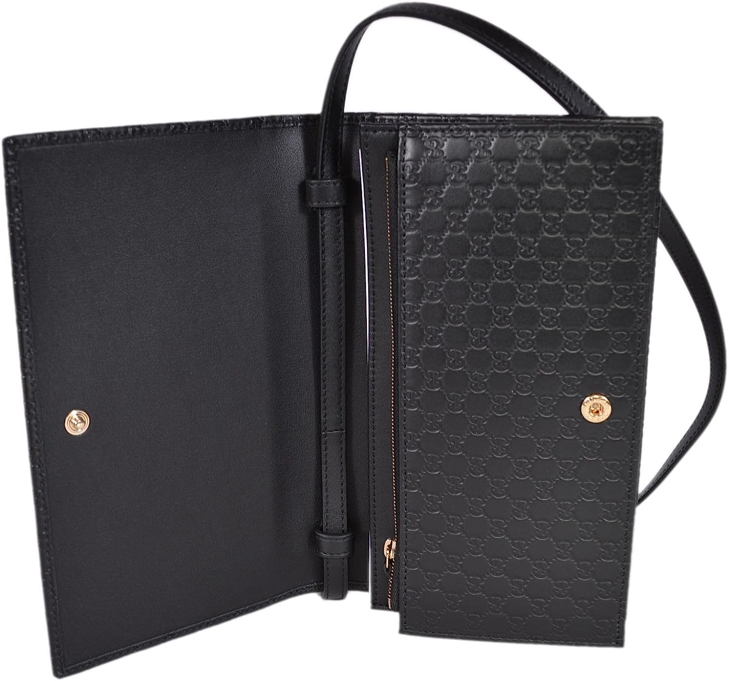 Gucci Women's Leather Micro GG Guccissima Mini Crossbody Wallet Bag Purse (Black)