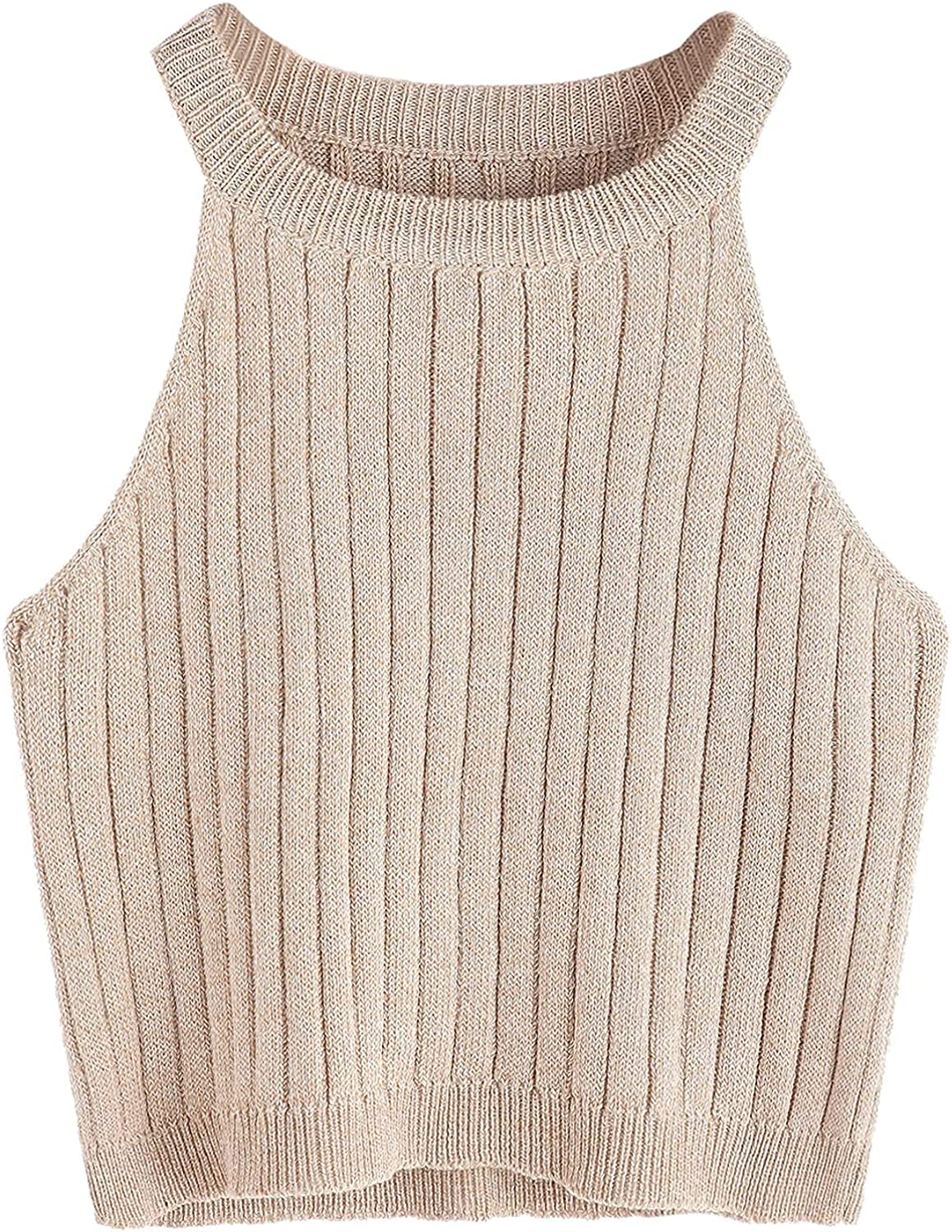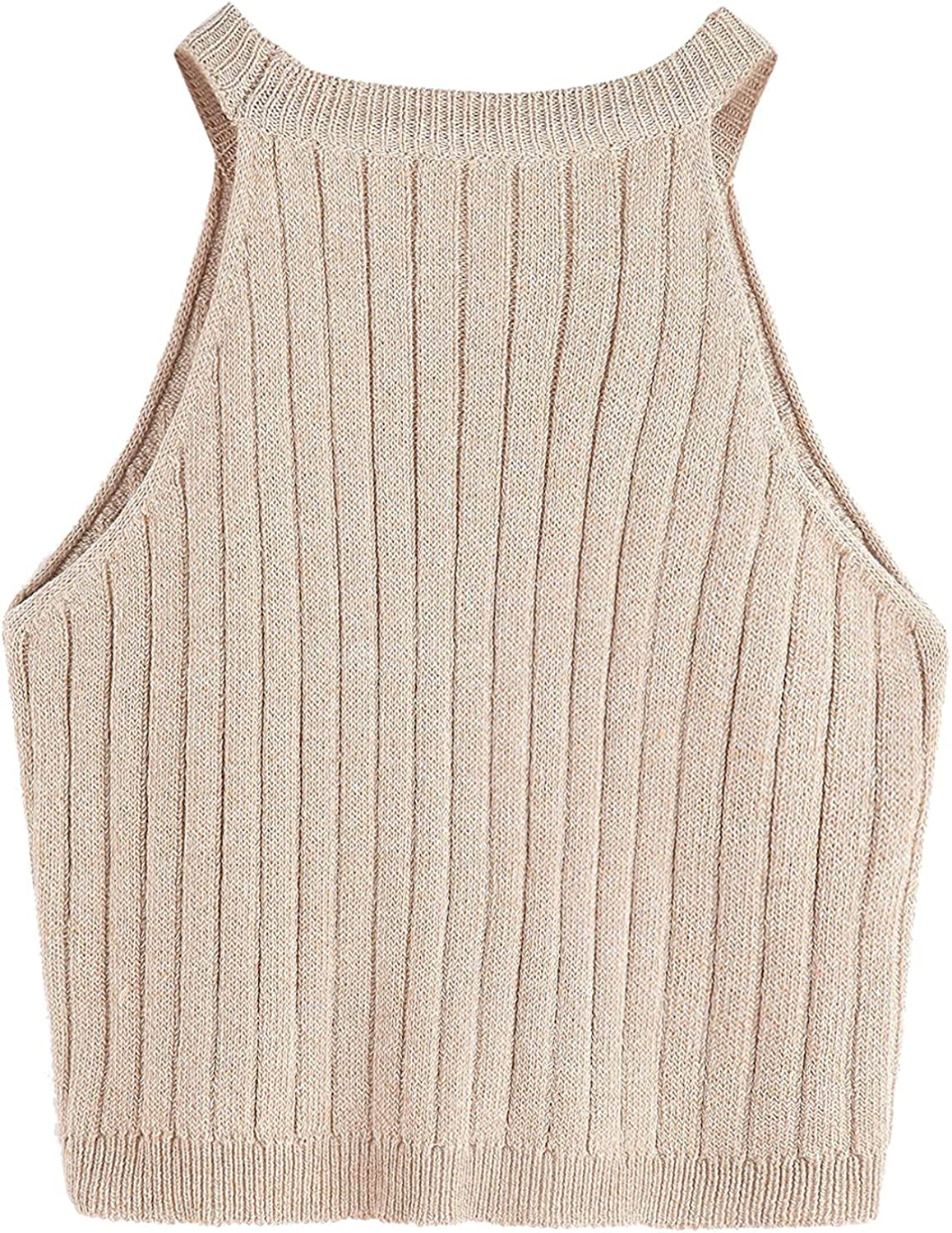 Halter knit top for women , womens basic sweater, featuring with sleeveless, high neck/halter neck and ribbed design.