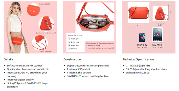 BRAND:DAVIDJONES purses for women designed in French since 1987.We are distributing Great stylish and versatile handbags for women in more than 100 countries .Excellent craftsmanship and refined premium quality leather like PU women purse.Decent quality women handbag with affordable price.