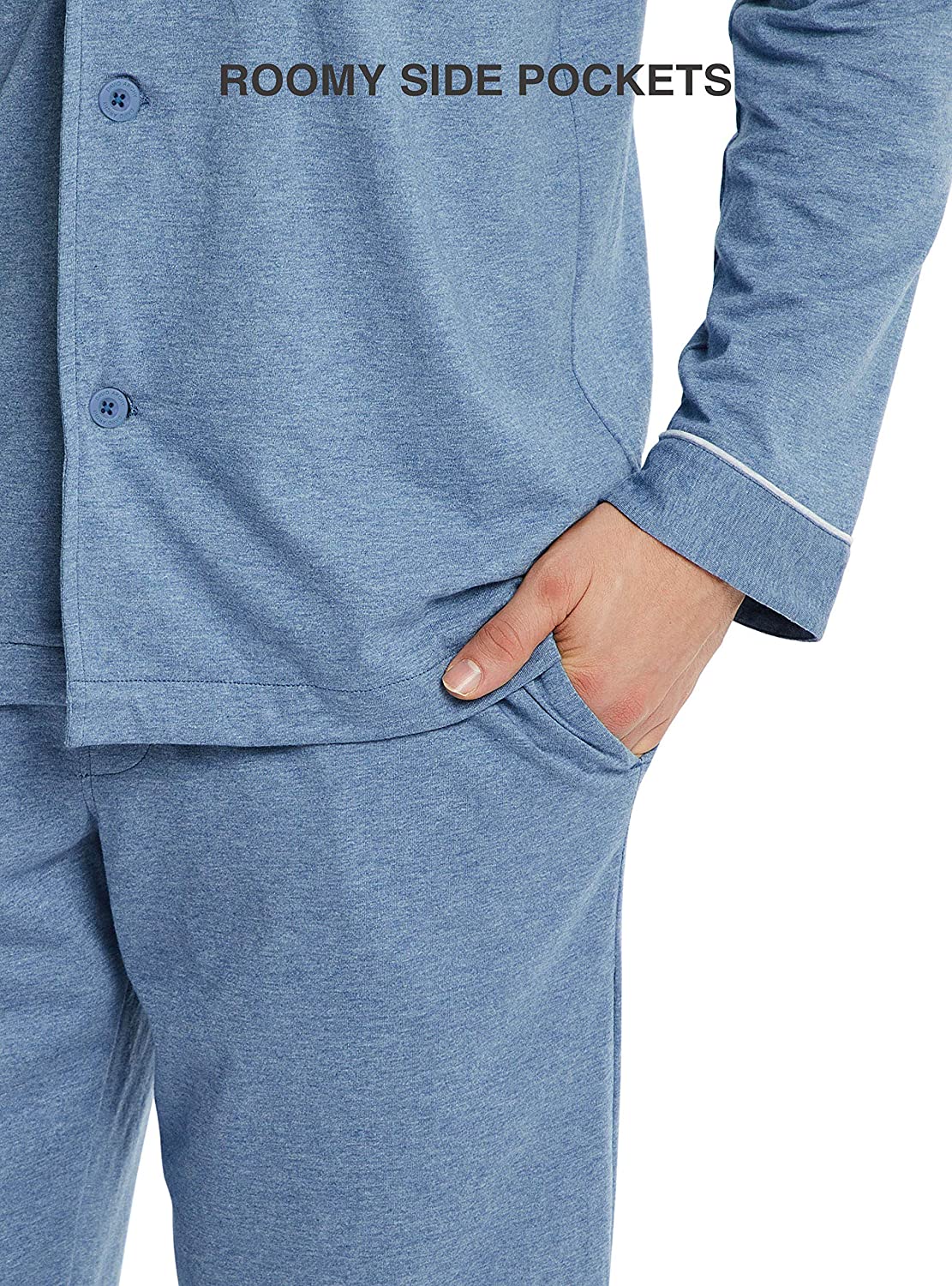 Button-down Collar: Long sleeve pajamas for men with pocket for a classic look