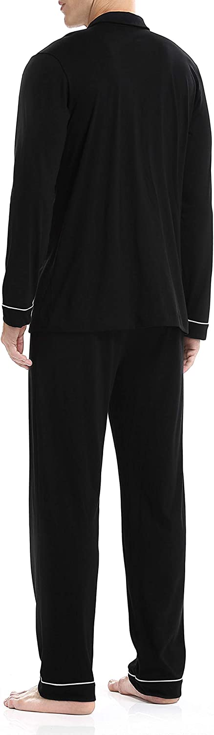 Button-down Collar: Long sleeve pajamas for men with pocket for a classic look