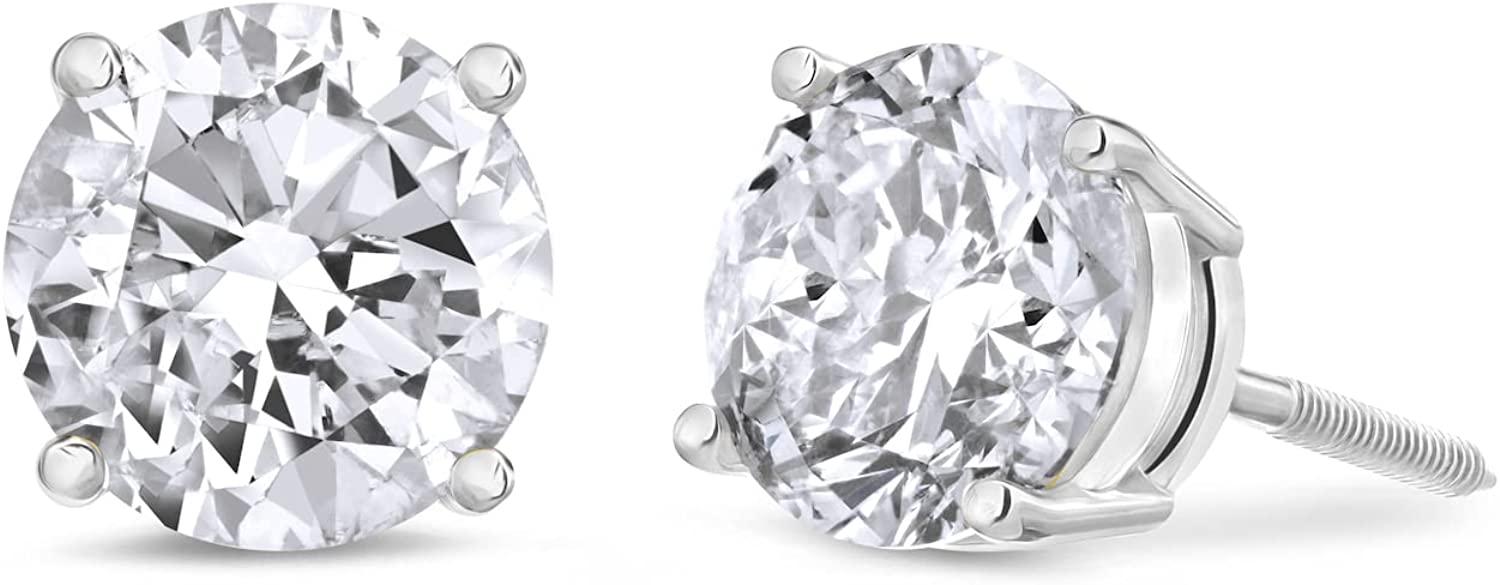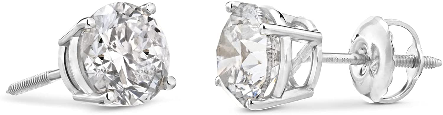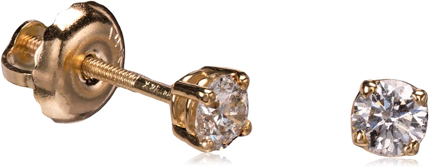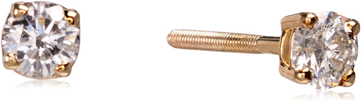 Amazon Collection 14K Gold Round-Cut Diamond Stud Earrings (1/4-2 cttw, J-K Color, I2-I3 Clarity)