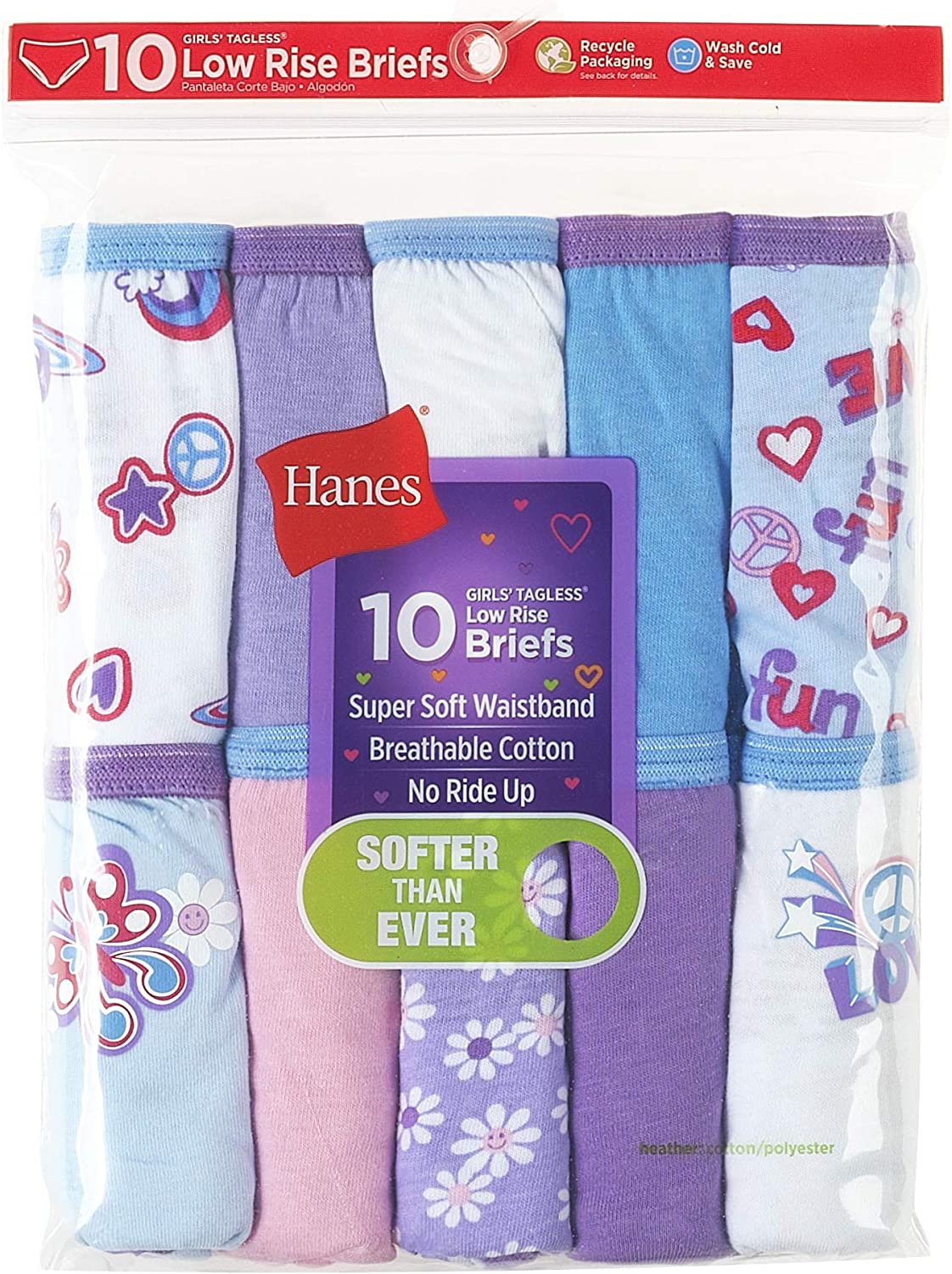 - VALUE 20-PACK – Stock up and save money. This value pack includes 20 pairs of Hanes girls’ underwear in assorted colors and playful prints.