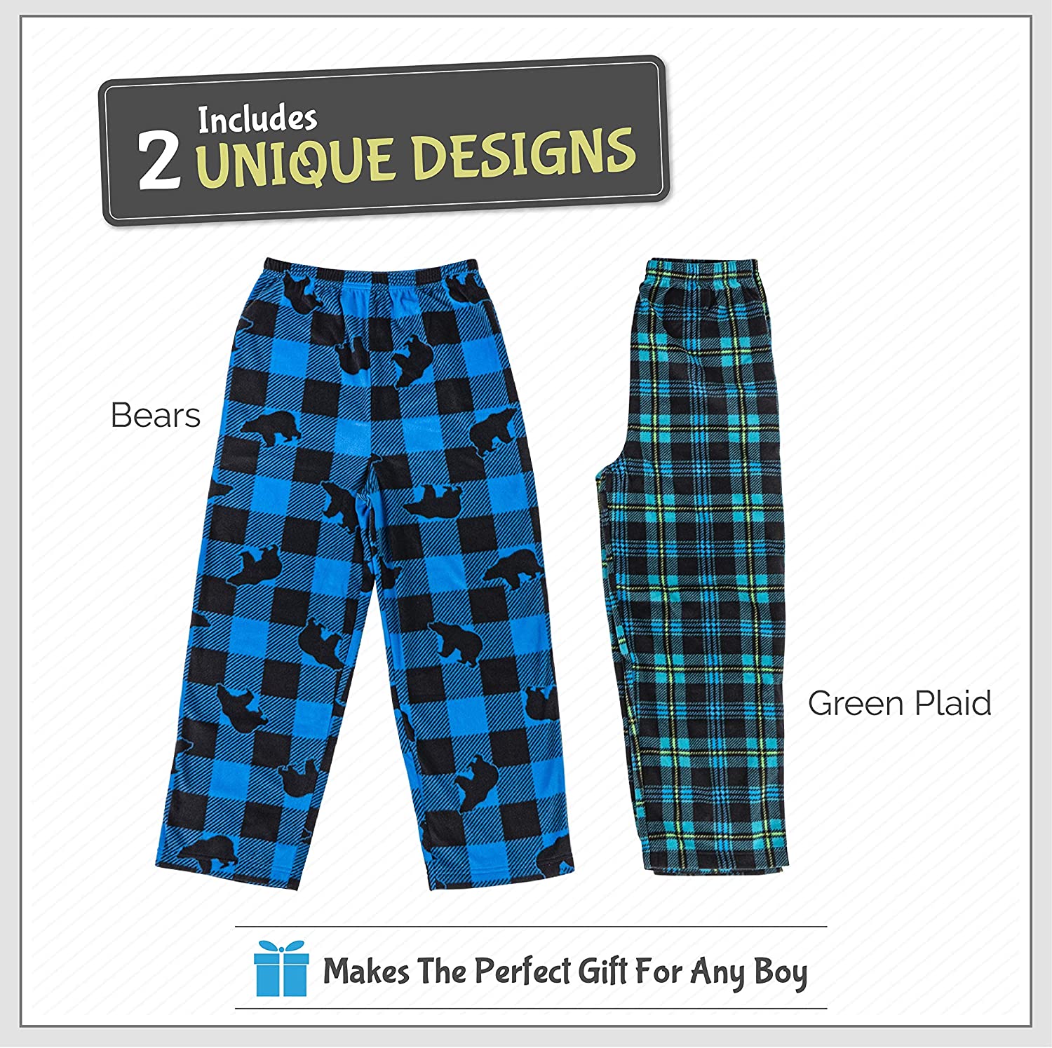 • Warm & Comfy Microfleece: These boys' fleece pajama pants keep you warm and comfortable regardless of the weather. We have multiple prints offered in many colors to meet every Boy’s fashion needs. We make this pant set from 100% polyester, which is a flame-resistant material that meets all environmental, government, and safety standards.