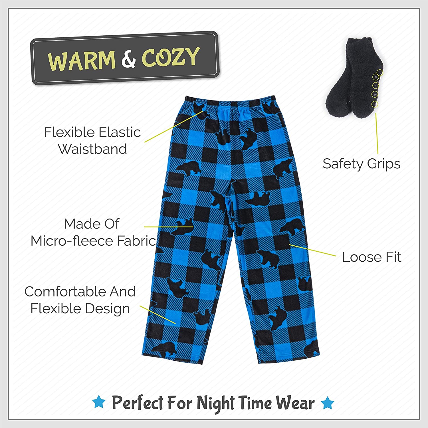 • Give the Gift that Keeps on Giving: These 2 pack boys' flannel pants and slipper socks make for a perfect present to give any boy, especially one in your life who loves wearing pajamas!