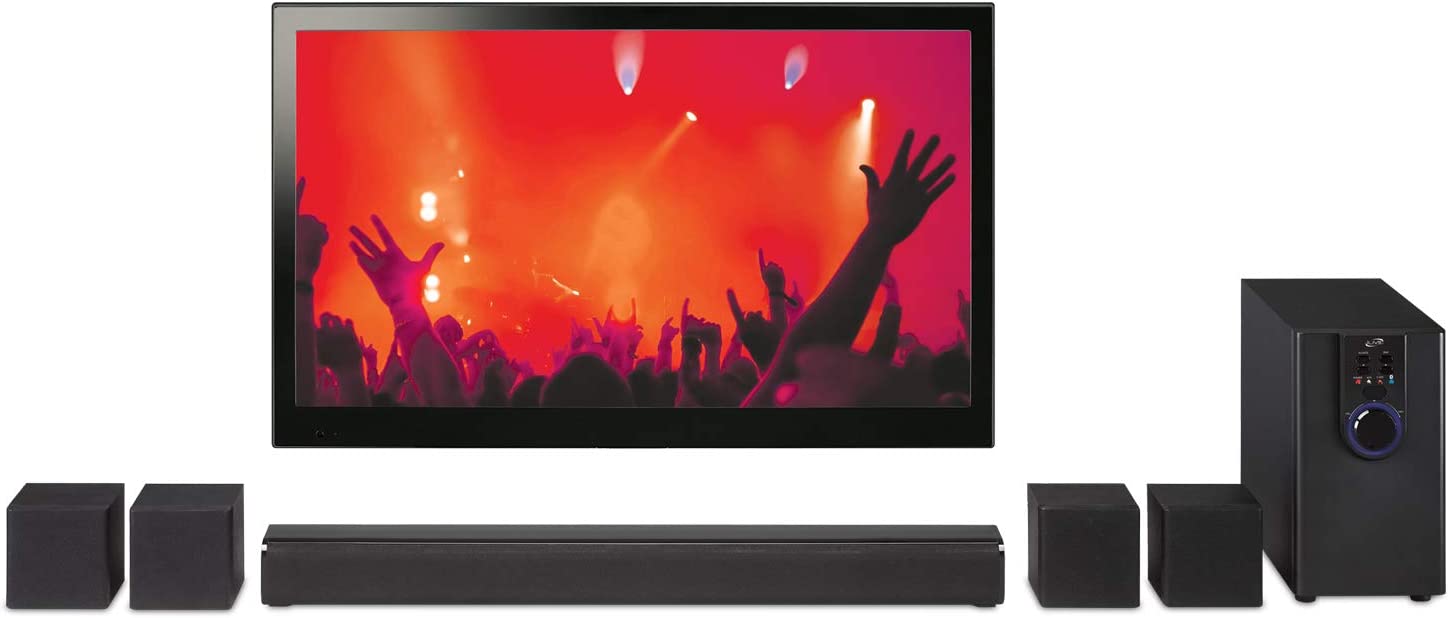 Complete your home theater experience with stunning sound from this 5. 1 channel powered speaker system. You'll hear every detail whether you connect via Bluetooth or RCA input. This home theater system features 6 surround speakers: subwoofer, front left and right, surround left and right and a 26 inch sound bar. With a wireless range of 60 feet, this system includes a remote control, 3. 5mm to RCA audio cable, 3 RCA stereo audio cables, and user's guide. Sound bar and satellite speakers are wall mountable (hardware not included). iLive products offer exciting, innovative features with a quality and affordability that you can depend on. AC power: built-in AC power cable,Soundbar Dimensions: 26 x 2.5 x 2.5,Single Speaker Dimensions: 3.54 x 2.95 x 3.54,Subwoofer Dimensions: 5.43 x 8.86 x 9.65,Cloth speaker grill,LED function indicator.