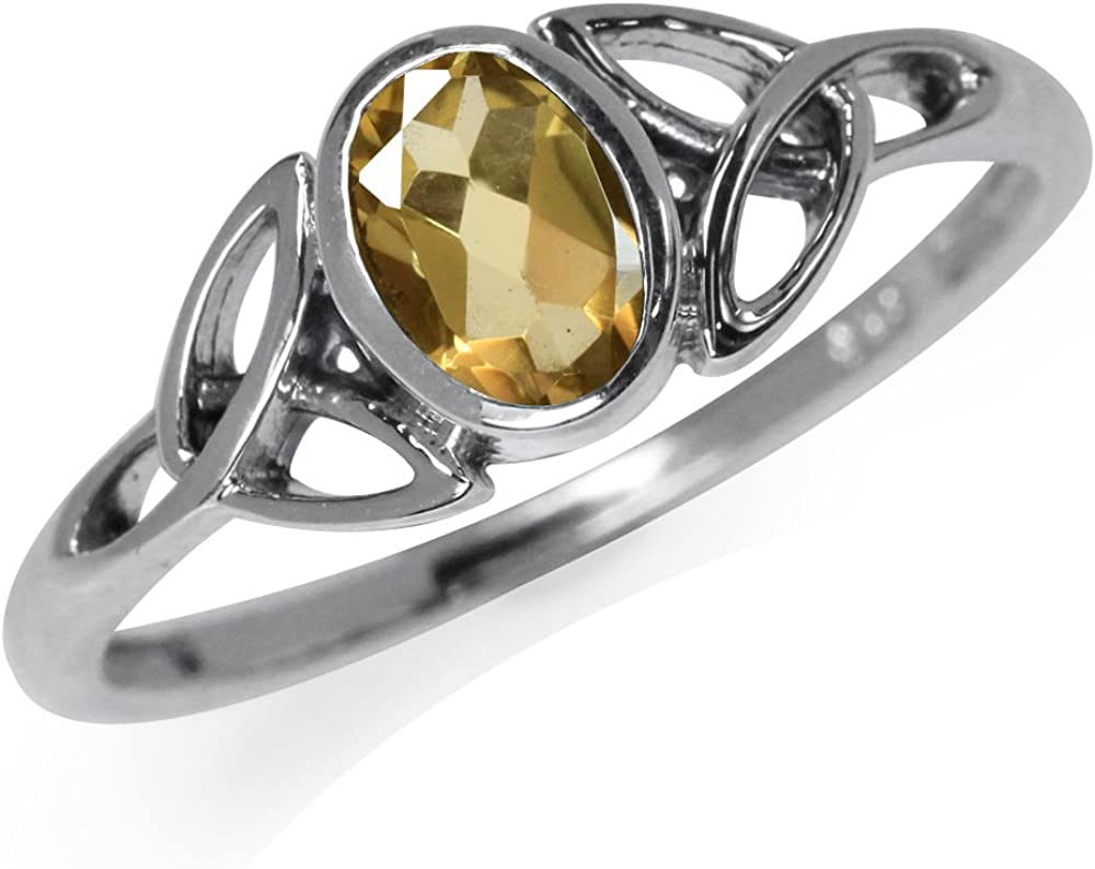 Silvershake 7x5MM Oval Shape Birthstone Gemstone 925 Sterling Silver Triquetra Celtic Trinity Knot Ring