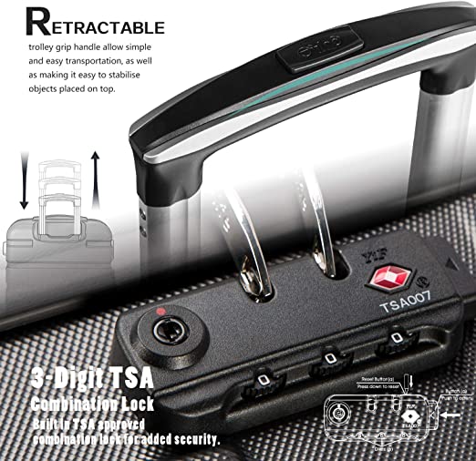 Spinner wheels, multidirectional smooth and silent 360°wheels. Upgrade With TSA-Accepted Lock for security and peace of mind.