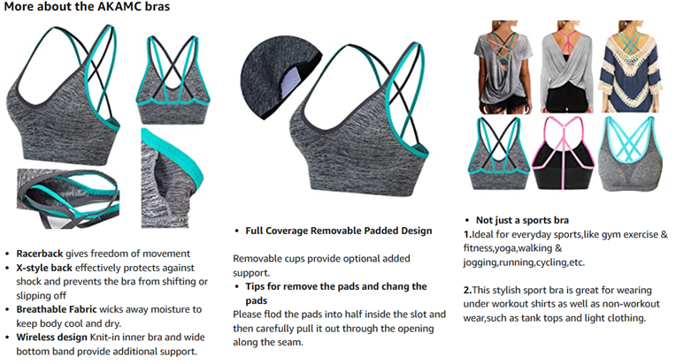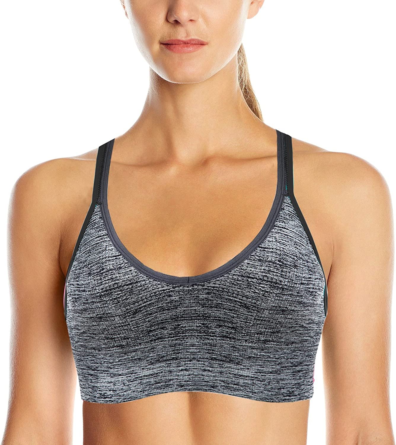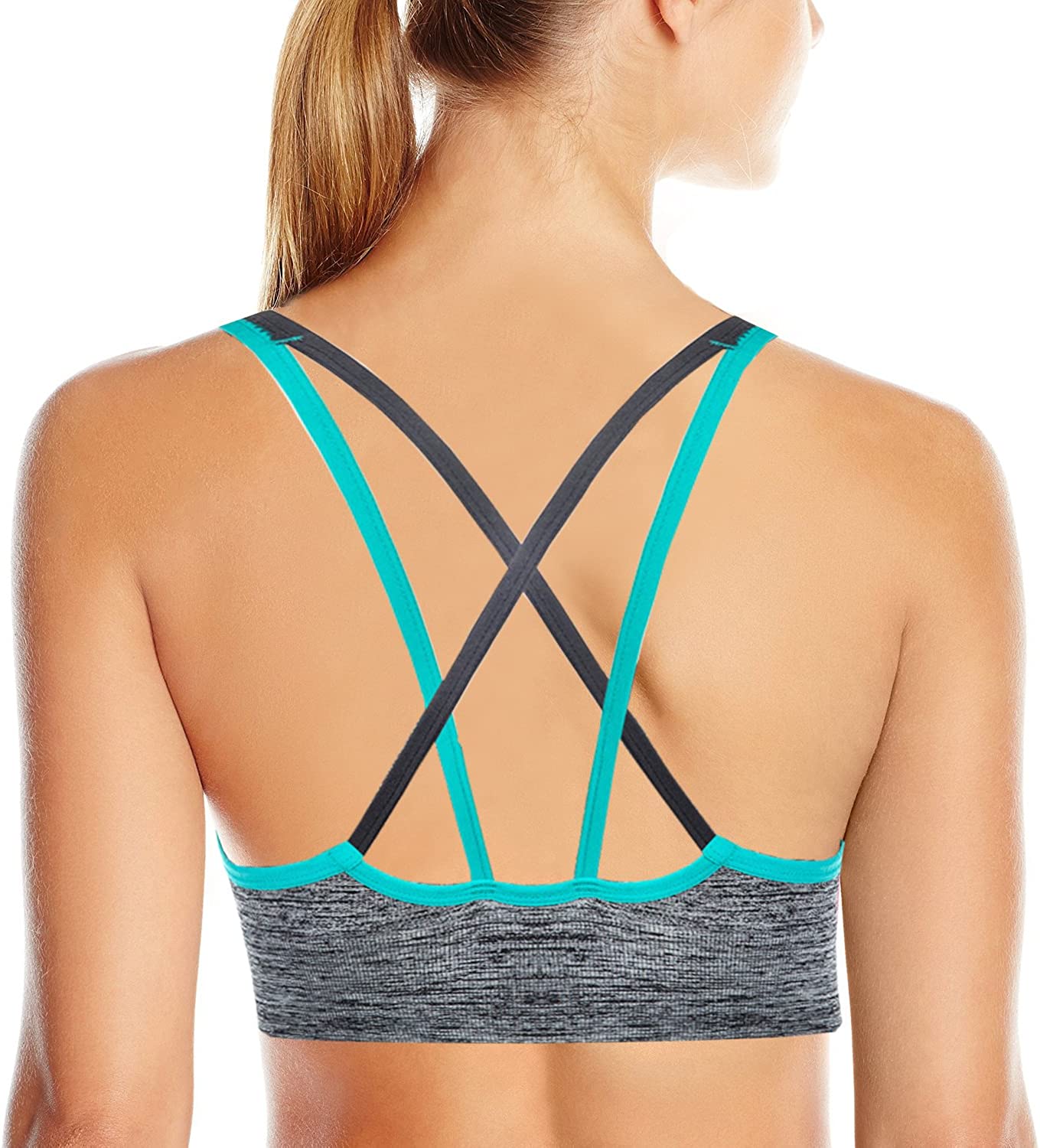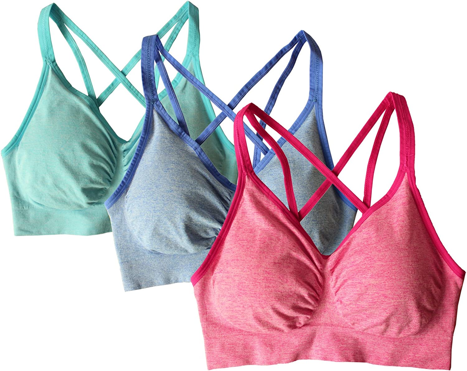 AKAMC 3 Pack Women's Medium Support Cross Back Wirefree Removable Cups Yoga Sport Bra