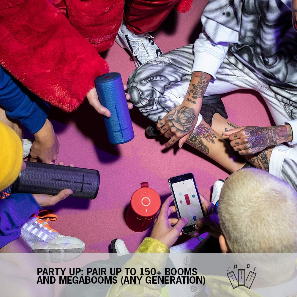 • PARTYUP: Use PARTYUP on the BOOM and MEGABOOM App to pair 2, 3, 4. . . and over 150 speakers and create the ultimate surround sound experience. You can combine multiple BOOM 3 and MEGABOOM 3 speakers or even pair them with previous generation BOOM, BOOM 2 and MEGABOOM.