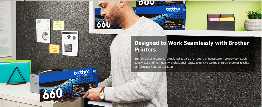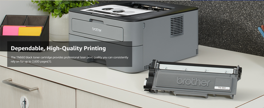 The use of Brother Genuine replacement high-yield toner cartridges like the TN-660 not only produces sharp, black and white pages with the quality you expect from Brother products – it also increases productivity and can reduce downtime when fulfilled through Amazon Dash Replenishment. The Brother TN-660 replacement laser black toner cartridge is for use with 16 Brother products. This professional cartridge is intelligently engineered to work in seamless unison without compromising the quality of the print. Upon activation, Amazon Dash Replenishment eligible Brother printers will seamlessly order Brother Genuine supplies through your Amazon account and ship them directly to your door. The Brother Genuine TN-660 replacement high-yield black toner cartridge can print approximately 2,600 pages(1). Once you’ve ordered your replacement cartridges from Amazon, you can feel comfortable knowing that Brother has an environmentally smart solution. Brother is dedicated to being environmentally responsible and offers disposal programs for properly discarding its cartridges. This replacement cartridge is for use with the following Brother printers and all-in-ones; DCPL2520DW, DCPL2540DW, HLL2300D, HLL2305W, HLL2315DW, HLL2320D, HLL2340DW, HLL2360DW, HLL2380DW, MFCL2680W, MFCL2685DW, MFCL2700DW, MFCL2705DW, MFCL2707DW, MFCL2720DW, MFCL2740DW.