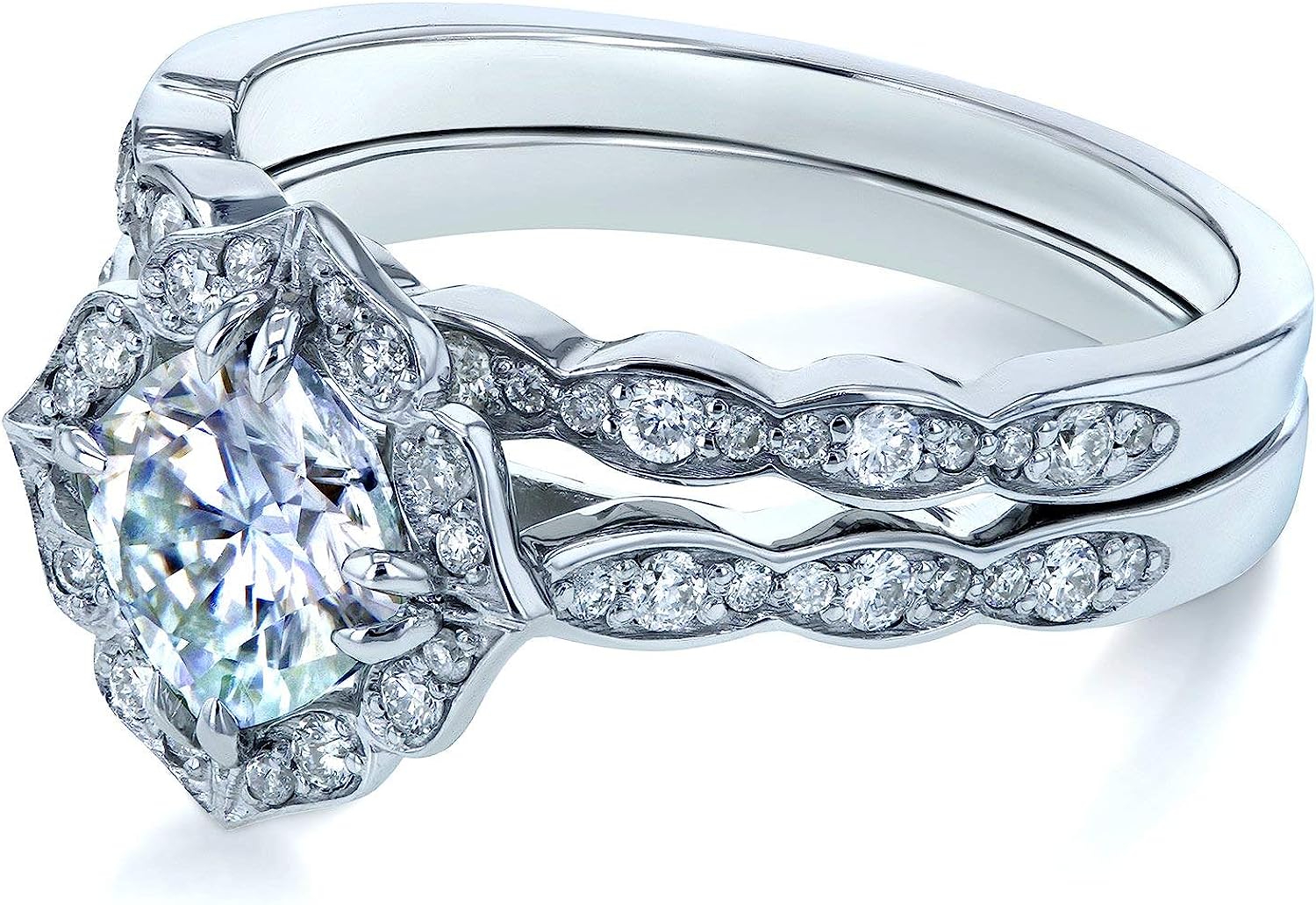 Kobelli Forever One Moissanite Vintage Style Floral Bridal Rings Set 1 1/2 CTW 14k White Gold (DEF/VS, GH/I)