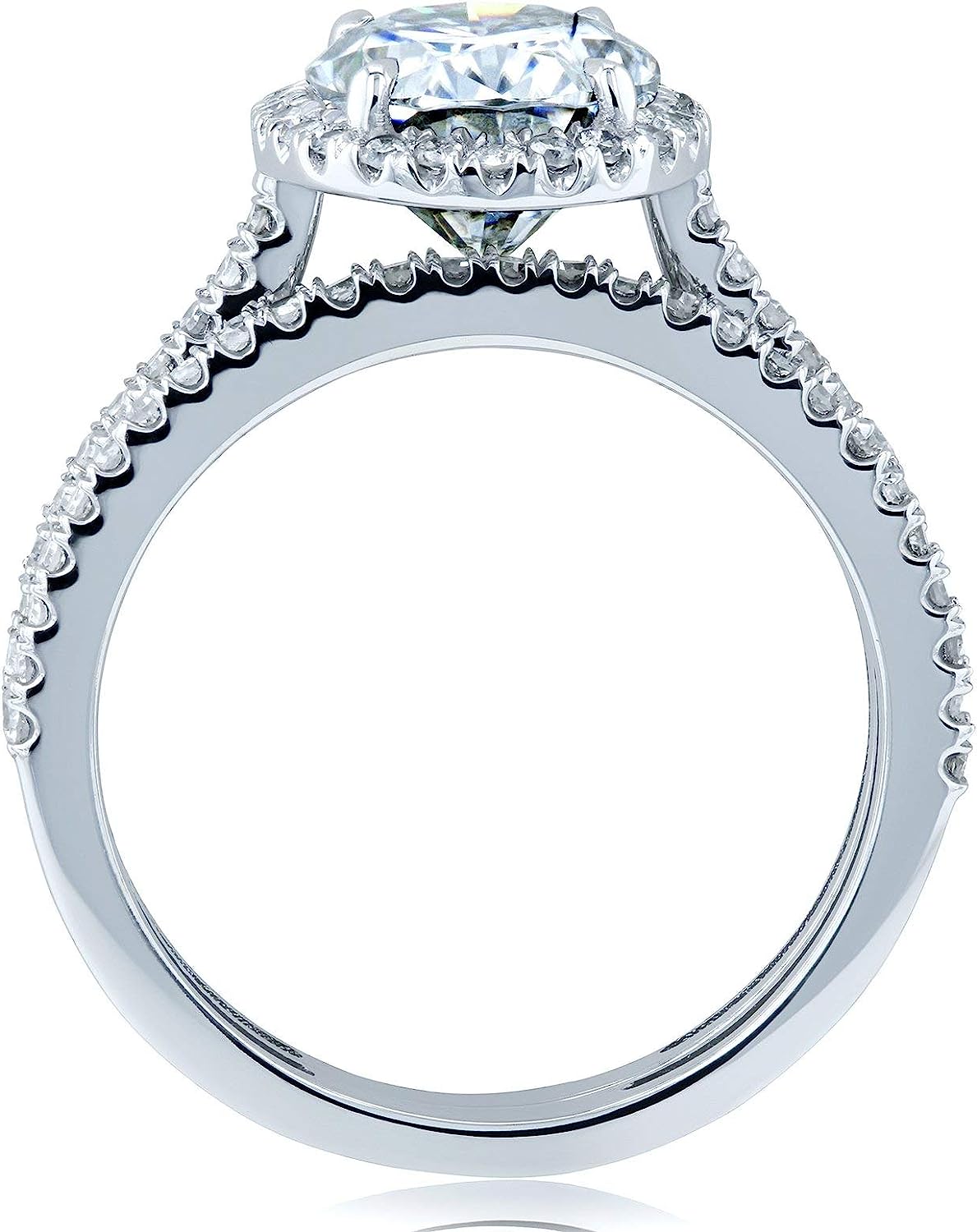 Kobelli Oval Moissanite Halo Bridal Rings Set 2 3/8 CTW 14k White Gold
