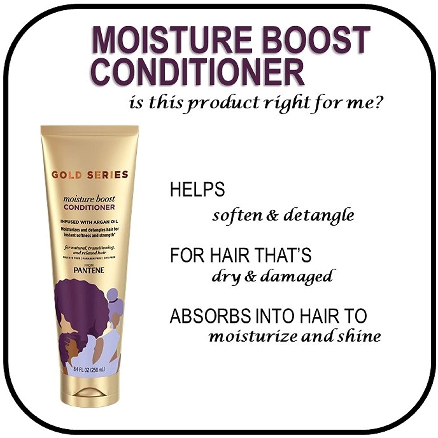 Get soft, beautiful hair with Gold Series from Pantene Sulfate Free Shampoo and Moisture Boost Conditioner. The powerful sulfate free shampoo is infused with argan oil to gently cleanse and instantly soften dry, damaged hair. The rich lather of Gold Series from Pantene Sulfate Free Shampoo works to remove buildup without stripping hair of its natural oils. Plus, this formula is free of harsh ingredients like parabens, sulfates and silicones to keep hair looking and feeling healthy. The Gold Series from Pantene Moisture Boost Conditioner moisturizes and detangles hair for instant softness and strength* after just one wash. Our hydrating conditioner is infused with Argan Oil, which absorbs into the hair to provide immediate relief and radiant shine. This paraben-free, dye-free, sulfate-free Argan Oil conditioner will give your hair resilience and flexibility after the first wash.