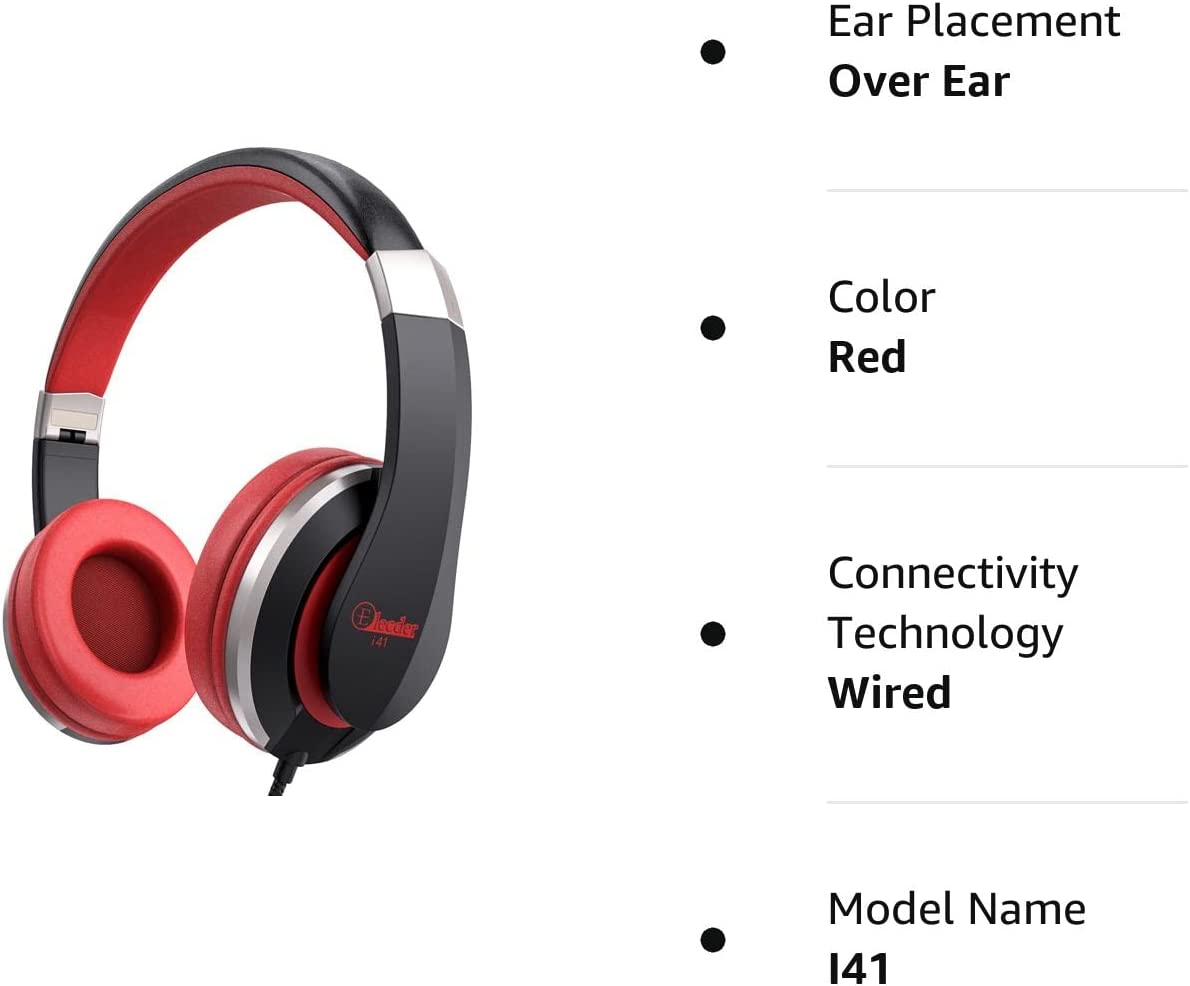 ELECDER i41 Kids Headphones, Headphones for Kids Children Girls Boys Teens Foldable Adjustable On Ear Headphones with 3.5mm Jack for Cellphones Computer MP3/4 Kindle School(Red/Black)