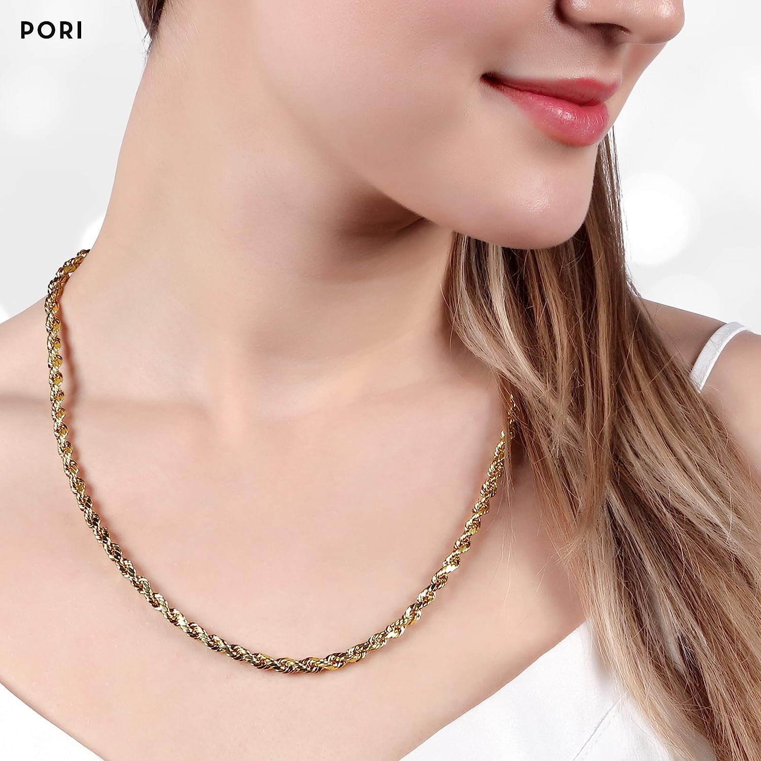 • SAFE-TO-WEAR 100% HYPOALLERGENIC: Our jewelry is made of lead and nickel-free materials, these durable, high-quality 10k gold rope chains are safe even for sensitive skin, and won't cause rashes or breakouts.