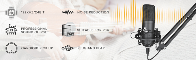 - 【Professional Sound Chipset 192kHz/24Bit】: This Condenser Microphone has been designed with professional sound chipset, which let the USB microphone hold high resolution sampling rate. SAMPLING RATE: 192kHz/24bit!!! Smooth, flat frequency response of 30Hz-16kHz--Extended frequency response is excellent for singing, speech and Voice over, Performed perfectly in reproduces sound, high quality mic ensure your exquisite sound reproduces on the internet.