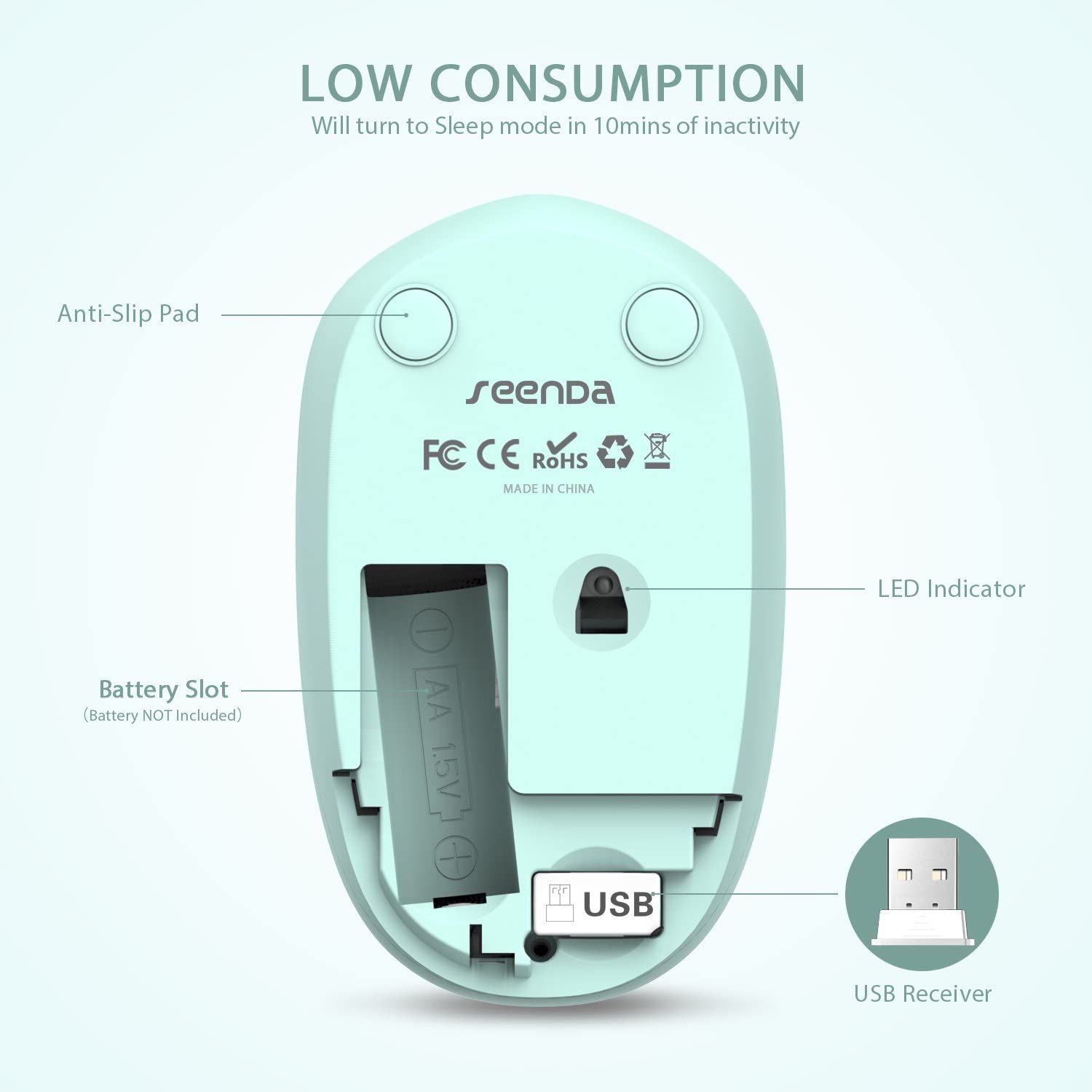 Only 1 AA Battery is Required -- It takes only 1 AA Battery(NOT Included) to operate this mouse, and the wireless mouse will turn to sleep mode in 10mins of inactivity for energy saving, can be easily activated by clicking any buttons