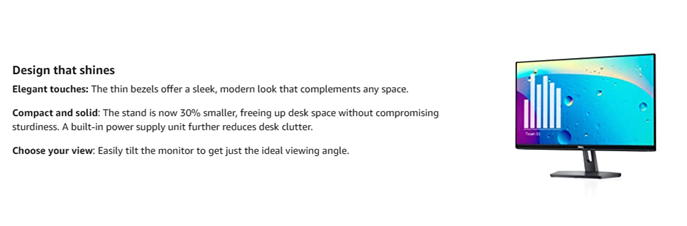 23.8 inch thin-bezel monitor with a compact base that maximizes desk space. Brilliant from every angle with a design that shines. In order to troubleshoot horizontal or vertical lines on a monitor, the following steps are recommended: 1. Reset the monitor to Factory Settings (Factory Reset). 2. Perform monitor self-test feature check and determine if these lines are also observed in self-test mode. 3. Check for bent or broken pins in the video cable connector. If found, test with another video cable and determine if issue is still present. 4. Last, run the built-in diagnostics. 5. If lines are observed after all of these steps and during the built-in diagnostics.