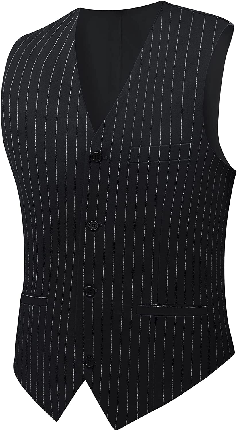 Button Fly closure, slim fit notch lapel flap pocket. Premium center vent two-button single breasted stripe suit jacket with matched four-button vest with back adjustable belt for better fit and classic trousers.