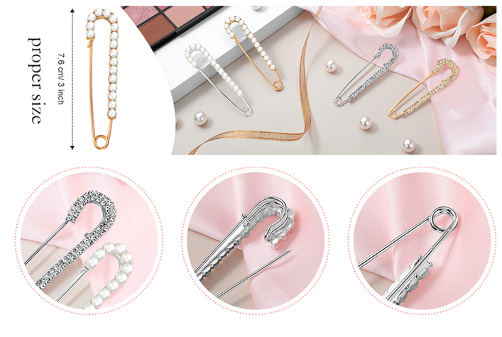 Package Includes: 4 pieces women brooch pins for you, to meet your daily dressing needs, or sharing demands with friends, same size, each is about 7.6 cm/ 3 inches long, just the right size for outfit decor; Tips: For safety reasons, the needle is not very sharp, so please use it vigorously
