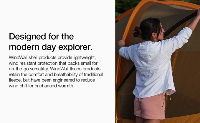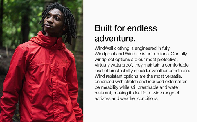 • WINDPROOF FABRIC. Made from a 100% recycled polyester windproof fabric, our technologically advanced WindWall protection keeps the chill at bay and is finished with a Durable Water Repellent (DWR) for added protection.