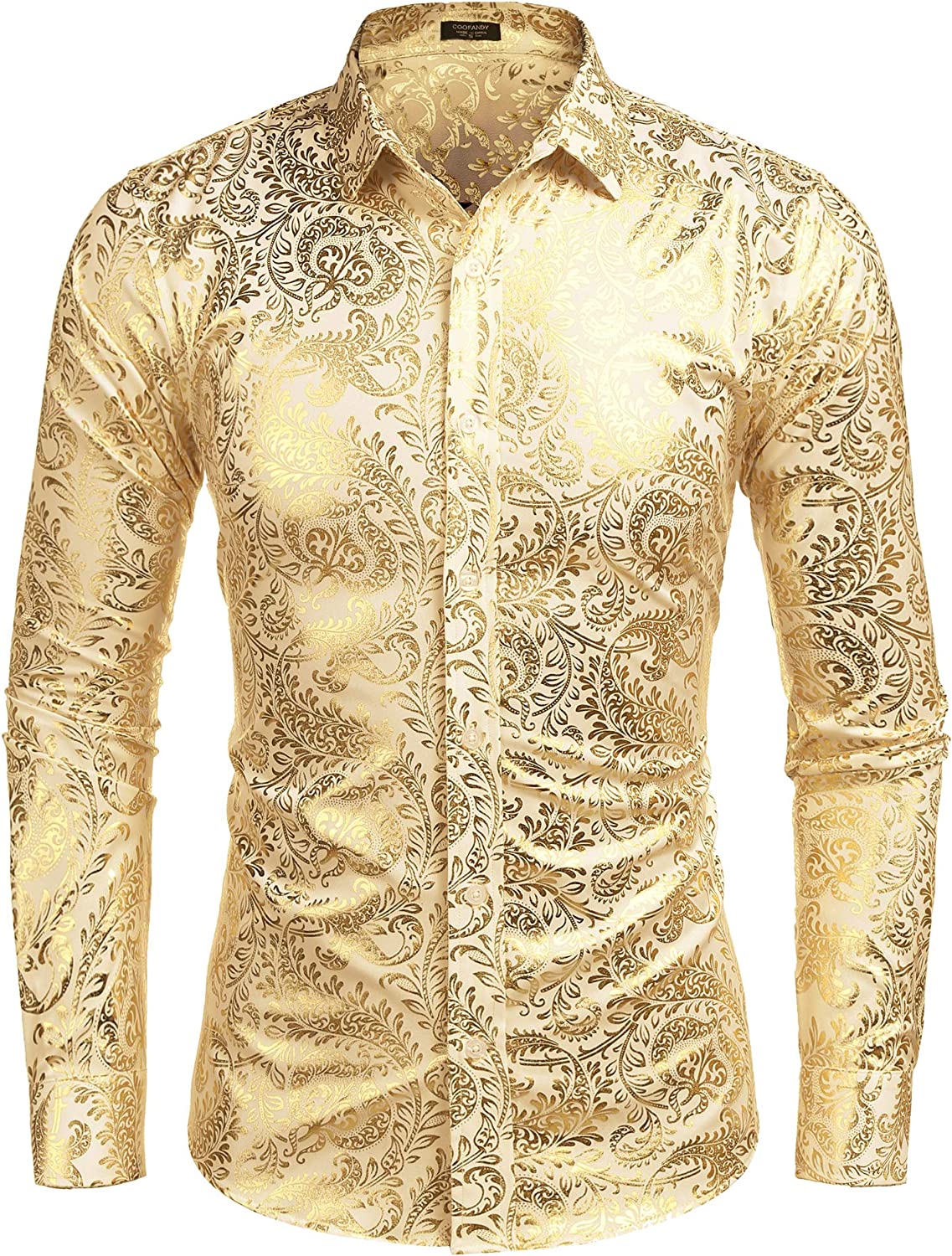 - Elegant Gold Floral Printed Dress Shirts: Crafted from hand selected material, this long sleeve shirt has been elaborately tailored for a comfortable regular fit. Clean and understated designs give an instant touch of effortless cool.