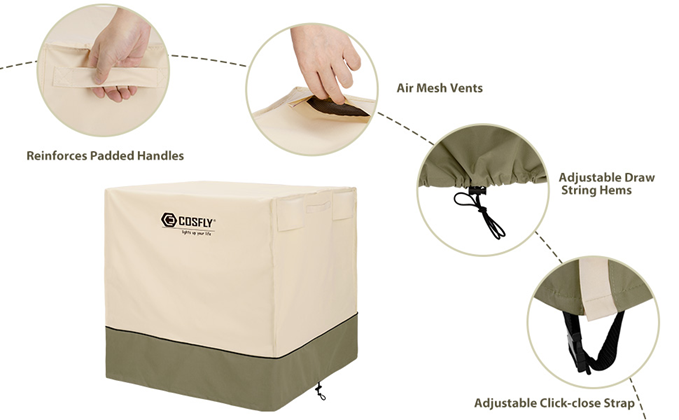 - AC Cover by COSFLY with durable and water resistant fabric combine convenient features and elegant looks.