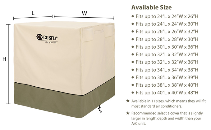 - CUSTOM FIT AC COVER: Large size cover 36 x 36 x 39 inches(L x W x H) , deeper than others and perfect for most of new standard square unit which is up to 36 x 36 x 39 inches(L x W x H)