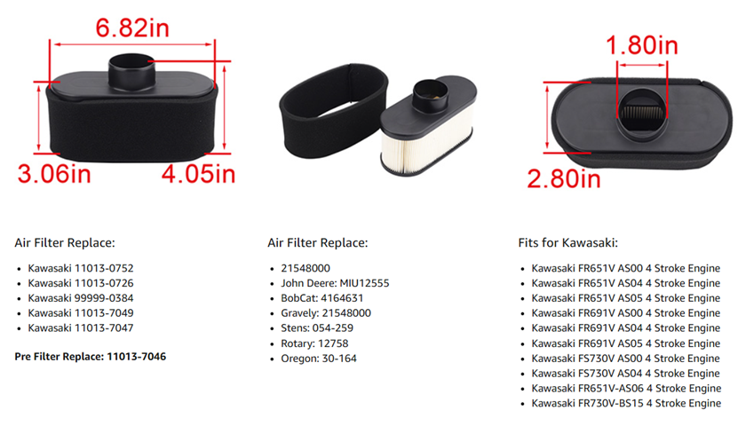 - Air filter replace for Kawasaki 11013-7047, 11013-7049, 11013-0726, 11013-0752, 99999-0384, Pre-Filter for 11013-7046