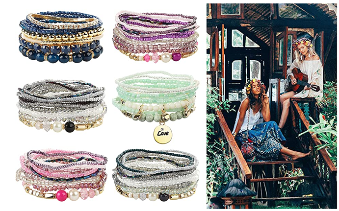 Affordable Stylish Bohemian Bracelet Set--6 sets handmade beaded bracelets come in a order, more choices for you. Bohemian beaded wrap clasp bangle have multi color can meet you everyday need