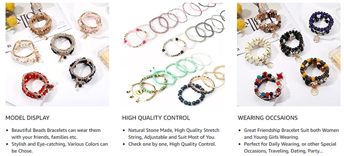 Multilayered Bracelet Set--Nice to Mix and match them according to your changing idea. Made of Top material: metal,acrylic beads. Approximately 3" diameter stretchy. Cute bracelet suit all of you daily wearing or yoga and dance class.