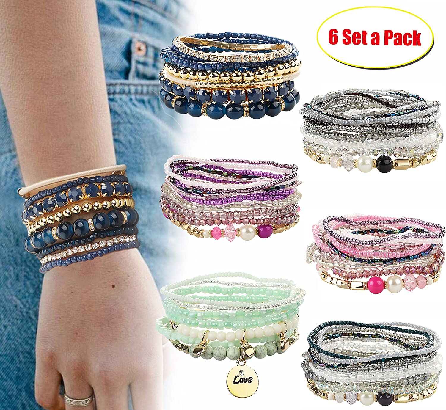 Best Gift--6 Sets Beads cuff bracelets perfect to share with your friends as friendship bracelets. Great gifts for girlfriend, wife, sister, daughter, mom, bridesmaid, and friends on graduation, birthday, Mother's Day, Christmas, Valentines Day, wedding anniversary