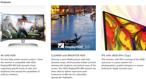 LG 27UL850-W 27 Inch UHD (3840 x 2160) IPS Display with VESA DisplayHDR 400 and USB Type-C Connectivity, White
