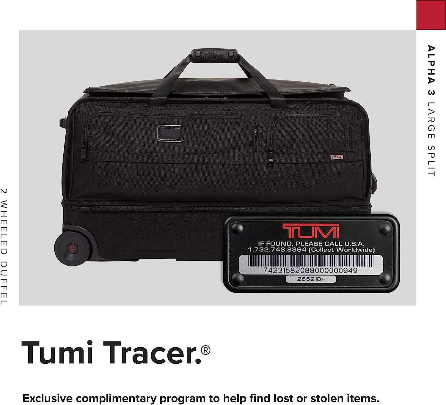 TUMI Alpha 3 Large Split 2-Wheel Duffel Bag - With Quick Zip Interior - Rolling Luggage for Men and Women - Black